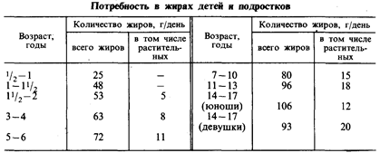 Что касается детского рациона, то содержание в нем жиров точно соответствует количеству белков (табл. 8).