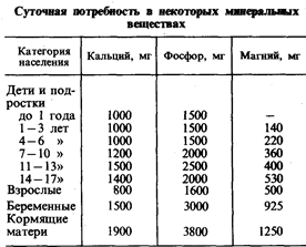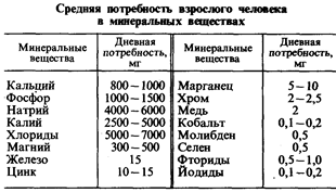 Все сказанное о роли макро- и микроэлементов делает необходимым нормирование их в питании населения. В этом отношении более или менее точно определена средняя потребность взрослого человека в целом ряде минеральных веществ (табл. 11).