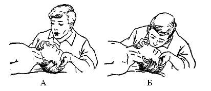 Рис. 3. Искусственное дыхание методом «изо рта в рот»: