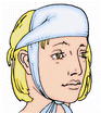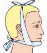 Наложение повязки на рану волосистой части головы осуществляют следующим образом: от бинта оторвать кусок (завязку) размером около 1 м, положить его на область темени, концы опускают вертикально вниз спереди от ушей; сам больной или кто-нибудь из помощников удерживает их в натянутом состоянии. Тур бинта начинают с левой стороны на уровне лба, переходят на правую сторону назад на затылок, таким образом делают два тура с обязательной фиксацией первого тура. Третий тур бинта оборачивают вокруг завязки то слева, то справа, так что бы он на 1/2 или 2/3 перекрывал предыдущий тур бинта. Каждый последующий тур ведут все выше и выше, пока вся волосистая часть головы не будет забинтована. Последний тур бинта привязывают к оставшейся вертикальной части завязки с любой стороны. Вертикальные концы завязки закрепляют под подбородком.