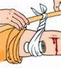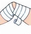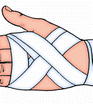 4. наложить давящую повязку Накладывают давящую повязку (желательно стерильную) из бинта или чистой проглаженной несинтетической материи. Начало бинта фиксируют на конечности левой рукой, а правой, натягивая, разматывают бинт слева направо. Сначала накладывают 2-3 круговых фиксирующих тура один на другой. Затем туры бинта ведут в косом (спиральном) направлении, на 1/2 или на 2/3 прикрывая предыдущий ход. Повязку лучше накладывать сверху вниз и завязывать на более тонкой части конечности. После этого поврежденную ногу или руку надо уложить выше уровня груди пострадавшего. Это положение дополнительно способствует уменьшению отека, остановке венозного кровотечения. |