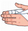 Для остановки кровотечения, уменьшения припухлости (отека) и создания покоя (например, поврежденной конечности) на область раны накладывают давящую повязку (желательно стерильную) из бинта, чистой проглаженной несинтетической материи.