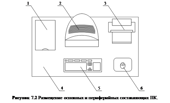Обычно рабочее место оператора оснащено следующим оборудованием: винчестер в системном блоке, вентилятор(ы) систем охлаждения ПК, монитор, клавиатура, принтер и сканер.