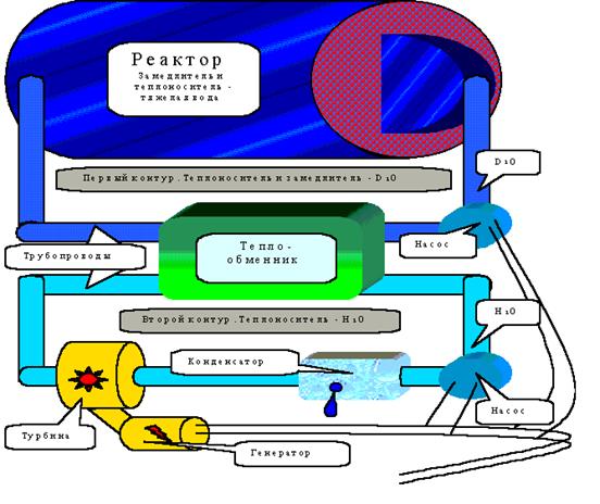 В Канаде и Америке разработчики ядерных реакторов при решении проблемы о поддержании в реакторе цепной реакции предпочли использовать в качестве замедлителя тяжелую воду. У тяжелой воды очень низкая степень поглощения нейтронов и очень высокие замедляющие свойства, превышающие аналогичные свойства графита. Вследствие этого реакторы на тяжелой воде работают на необогащенном топливе, что позволяет не строить сложные и опасные предприятия по обогащению урана. В принципе хорошо спроектированный и построенный реактор на тяжелой воде может работать долгие годы на естественном уране, нуждающемся лишь в выделении его из руды, и давать дешевую энергию. Но тяжелая вода очень дорога в производстве, и поэтому вследствие неизбежных утечек ее из трубопроводов суммарные затраты на эксплуатацию реактора возрастают и приближаются к аналогичным у РБМК и ВВЭР.