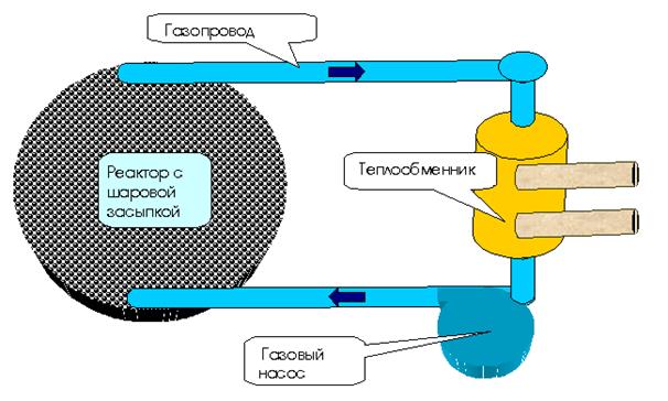 В реакторе с шаровой засыпкой активная зона имеет форму шара, в который засыпаны тепловыделяющие элементы, также шарообразные. Каждый элемент представляет из себя графитовую сферу, в которую вкраплены частицы оксида урана. Через реактор прокачивается газ - чаще всего используется углекислота СО2 . Газ подается в активную зону под давлением и впоследствии поступает на теплообменник. Регулирование реактора осуществляется стержнями из поглотителя, вставляемыми в активную зону.