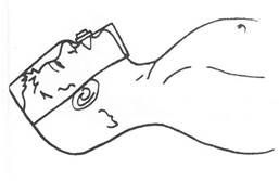 Для п р о в е д е н и я и с к у с с т в е н н о г о д ы х а н и я пострадавшего необходимо положить на спину, голову максимально запрокинуть назад, подложив ему под лопатки доску или валик из одежды, чтобы выпрямились воздухоносные пути и язык не закрывал входа в трахею (рисунок 9 ).
