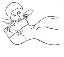 Для п р о в е д е н и я и с к у с с т в е н н о г о д ы х а н и я пострадавшего необходимо положить на спину, голову максимально запрокинуть назад, подложив ему под лопатки доску или валик из одежды, чтобы выпрямились воздухоносные пути и язык не закрывал входа в трахею.