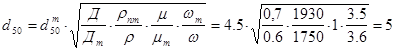 , приведенные в таблице 2.4, определены по условиям работы типового циклона (Дт = 0,6 м; rпт = 1930 кг/м3; mт = 22,2×10-6; wт = 3,5 м/с), необходимо учесть влияние отклонений условий работы от типовых на величину d50: