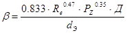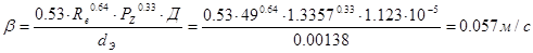 Для заданного режима течения газа (определяется значением Rе) вычисляем величину коэффициента массопередачи для единичной удельной поверхности, м/с