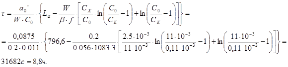 Находим продолжительность защитного действия адсорбера: