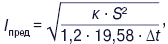 Анализируя формулы (1) и (2), можно заметить, что температура проводника зависит в первую очередь от величины тока в проводнике при КЗ и в несколько меньшей степени от времени его протекания. Решая эти формулы относительно тока, получим выражения для предельных значений токов КЗ Iпред, при которых возгорание проводника ещё не произойдет: