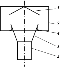 1 - диффузор, 2 - цилиндрическая обечайка, 3 - колпак, 4 - конус, 5 - патрубок
