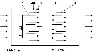 1 и 2 - положительные и отрицательные электроды соответственно;