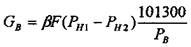 Р - коэффициент массоотдачи; F-площадь поверхности испарения, м2; Рн1, Рн2 - парциальные давления насыщенного водяного пара при определенной температуре воды и воздуха в помещении, Па; РБ - барометрическое давление. Па. |