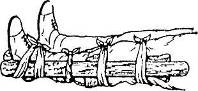 Рис. 13. Иммобилизация перелома бедра с помощью одной доски