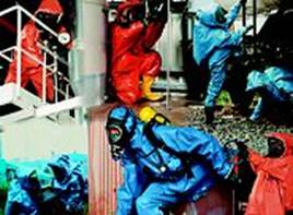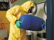 Защитный костюм, состоящий из куртки и брюк, отличается от защитного комбинезона только тем, что его составные части изготовлены раздельно. В комплект костюма входят резиновые перчатки, сапоги и подшлемник.