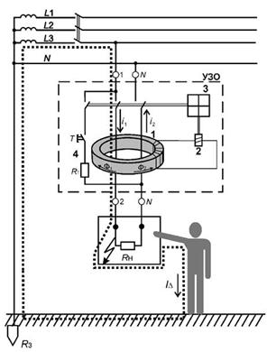 Рис. 4. Схема, иллюстрирующая принцип действия УЗО