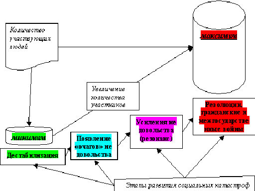 · На начальном этапе это дестабилизация существовавшего ранее уклада жизни в отдельном регионе или в стране в целом.