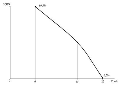 | Величина тока, мА | 1 | 6 | 50 | 100 | 250 | 500 |