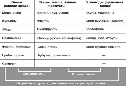 Особое внимание необходимо обращать на совместимость качественно разнородных продуктов. Например, богатые белками продукты надо использовать во время завтрака и обеда, так как белок повышает жизненный тонус, стимулирует деятельность нервной системы, ускоряет обмен веществ. Питание можно считать нормальным только тогда, когда пища в полной мере отвечает потребностям организма, обеспечивает постоянство массы тела и способствует нормальной работе всех органов и систем организма. Неправильно организованное питание вызывает серьезные нарушения в состоянии здоровья человека. Итак, основные правила питания: