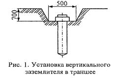 Стержни длиной 2,5...3м погружаются (забиваются) в грунт вертикально в специально подготовленной траншее (рис.1 ).