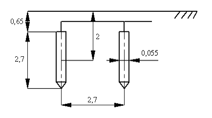 | Глубина заложения заземлителя в грунт h, м | 0,65 |