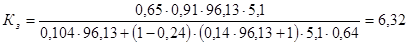 Rз. = Rтр. * Rп. / (ηтр. * Rтр. + ηтр. * Rп. * n1 = 22,5 *21/ (0,5*22,5 + 0,78*21*7,7) = 3,4 Ом
