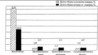 Анализ статических данных ряда стран позволяет выявить примерное распределение числа пожаров и потерь от них по зданиям трех основных назначений:
