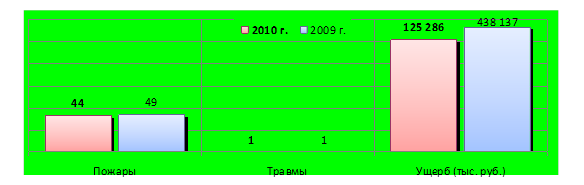 За 2 месяца 2010 года на территории 2 РОГПН Управления по ЦАО ГУ МЧС России по г. Москве произошло 73 пожара, из них 26 – на торговых площадях. На пожарах получили травму 1 человек, погиб 1 человек. Следует отметить, что в сравнении с аналогичным периодом прошлого года произошло уменьшение количества пожаров на 2 случая, количества пострадавших увеличилось на 1 человека.