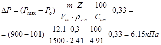 = 900 кПа – максимальное давление взрыва стехиометрической газовоздушной или паровоздушной смеси в замкнутом объеме [2];