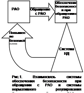 Тогда обобщенную взаимосвязь системы обеспечения безопасности при обращении с РАО и системы нормативного регулирования безопасности при обращении с РАО можно представить в виде, приведенном на рис.1.