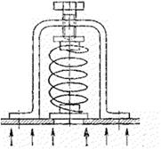 где Dн.п., Dп.п., D — пропускная способность клапана, кг/ч: α — коэффициент расхода пара (жидкости) клапаном, определяется проектной организацией (заводом-изготовителем) экспериментально для каждой конструкции клапана и записывается в паспорт; P1 — максимальное избыточное давление перед предохранительным клапаном, МПа Vн.п., Vп.п. V - удельный объем пара перед предохранительным клапаном, м3 /кг; F — площадь сечения клапана, равная наименьшей площади сечения в проточной части, мм. Различают пружинные и рычажные предохранительные клапаны (рис. 3.3.1-3.3.2.).