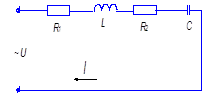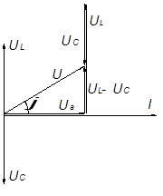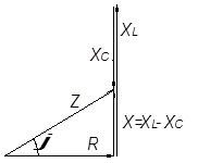 – геометрическим сложением векторов напряжений на активном сопротивлении, индуктивности и емкости получим вектор приложенного напряжения: