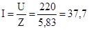UC = I · XC =37,5 · 6 = 226,2 В.