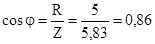 Найдем величину угла сдвига фаз между напряжением и током j =агссо s (со s j ) тогда, j = arccos 0,86= 31° |