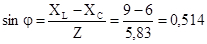 реактивная мощность: Q = S · sin j = 8294 · 0,514 = 4263 вар.