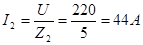 I 1 =22А; I 2 =44А; I =29,5А; S =6490 ВА; Р=2950,5 Вт; Q =-5808,5 вар; j =-63,50 .