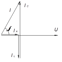 Так как общий ток I опережает напряжение U ( IC > IL ), то характер цепи будет активно – емкостной, и угол φ – отрицательный.