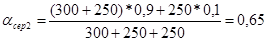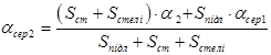 При визначенні сталої приміщення після облицювання треба звернути увагу на зміну середнього коефіцієнта звукопоглинання. До облицювання він складав для всіх внутрішніх поверхонь за умовами задачі αсер1 = 0,1. Після облицювання підлога залишилася з попереднім коефіцієнтом звукопоглинання (αсер = 0,1), а у стелі та стін він буде дорівнювати α2 = 0,9. Середній коефіцієнт звукопоглинання після облицювання можна визначити як середньозважену величину від площі внутрішніх поверхонь, що мають різні коефіцієнти звукопоглинання: