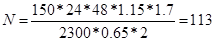 Визначити необхідну кількість світильників загального призначення для створення в приміщенні розміром 24´48 м нормованого освітлення 200 лк. Світловий потік газорозрядної лампи дорівнює 2300 лм, коефіцієнт запасу – 1,7, коефіцієнт нерівномірності освітлення - 1,15, коефіцієнт використання світлового потоку – 0,65. Система освітлення комбінована.