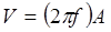 где V, W-колебательная скорость,м/с и виброускорение, м/с² ;