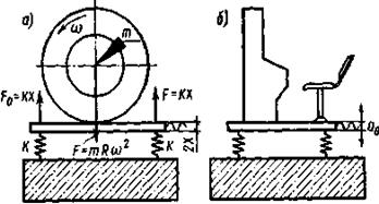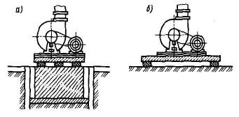 Рис. Установка агрегатов на виброгасящие основания: а – на фундаменте и на грунте; б – на перекрытии.