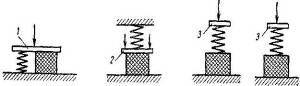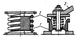 Рис. Схемы пружинно-резиновых амортизаторов:1 – резина; 2 – стальная пружина; 3 – опора виброизолированной машины.