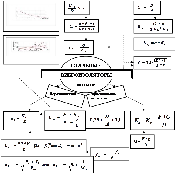 Используя схему расчетов на рис. 2.5.19, рассмотрим пример выбора стальных и резиновых виброизоляторов.