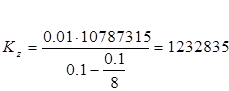 Необходимо определить количество резиновых виброизоляторов для центрифуги весом Q= 14240 кг, которой создается усилие 139694,4 Н. Расчетная величина центробежной силы Рz - 9810Н. Виброизоляторы изготовлены в форме кубиков с поперечным размером А (диаметр или сторона квадрата) равным 0,1м (площадью основания - F =0,01м 2 ) из резины сорта 4049, динамический модуль упругости Еg- 10787315 Па. Замеренная частота возмущающей силы fo =24Гц. Величину возмущающих сил (Pk z ) необходимо уменьшить до 196,2 Н. Учитывая, что имеющиеся в распоряжении виброизоляторы удовлетворяют требованию 0,25 < 0.1 / 0.1 < 1,1, определим жесткость в вертикальном направлении Kz одного резинового виброизолятова ( рис.2.5.19):