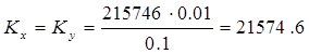 Горизонтальная жесткость (Кх; Ку) резинового виброизолятора с учетом модуля упругости (