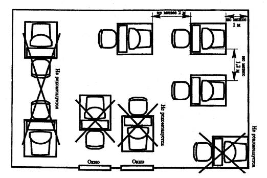 Во-вторых, необходимо позаботиться о правильном размещении рабочих мест как относительно непосредственно комнаты, так и относительно всего здания предприятия.