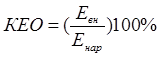 Критерием естественной освещенности является коэффициент естественной освещенности (КЕО или ЕН ), который представляет отношение естественной освещенности светом неба в некоторой точке заданной плоскости внутри помещения Евн к одновременному значению наружной горизонтальной освещенности, создаваемой светом полностью открытого небосвода Енар , и выражается в процентах:
