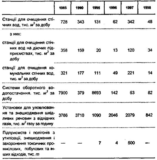Таблиця 3.1 Введення в дію окремих виробничих потужностей по охороні навколишнього середовища.