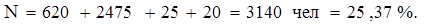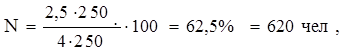 На промышленном предприятий площадь, попавшая в зону заражения СД и ЯВ составила 2,5 км2, общая площадь промышленного предприятия – 4км2; плотность работающих на предприятии – 250 чел/км2; общее количество работающих – 4*250 =1000 чел, тогда процент и количество пострадавших будет равно: